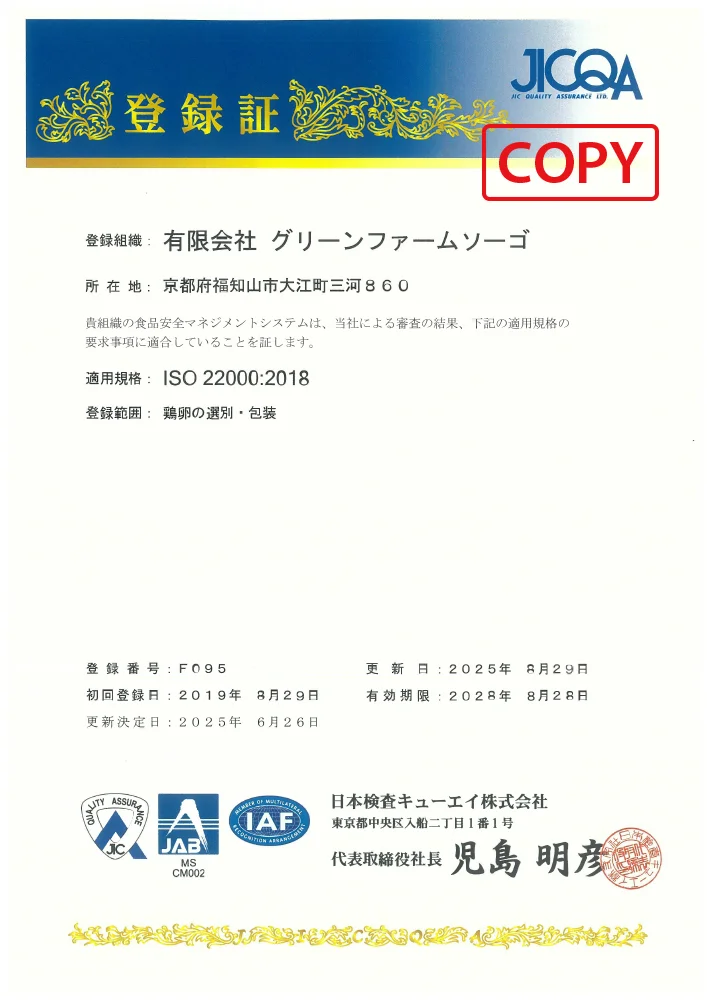 審査登録範囲 | 鶏卵の選別・包装 |